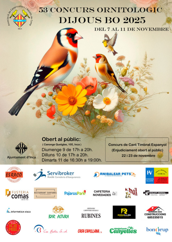 53è CONCURS ORNITOLÒGIC DIJOUS BO INCA -2025